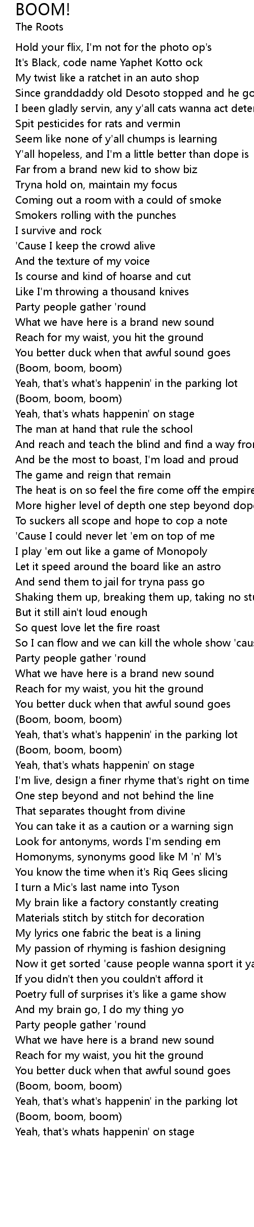(Boom, boom, boom) |