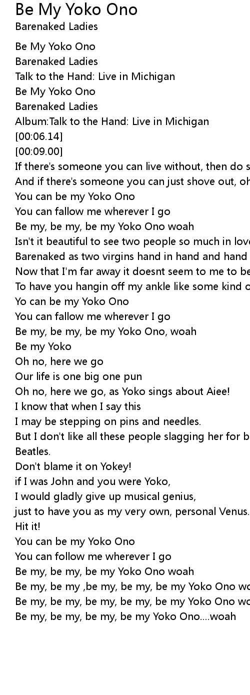 [02:32.56] Be my, be my, be my, be my Yoko Ono....woah
