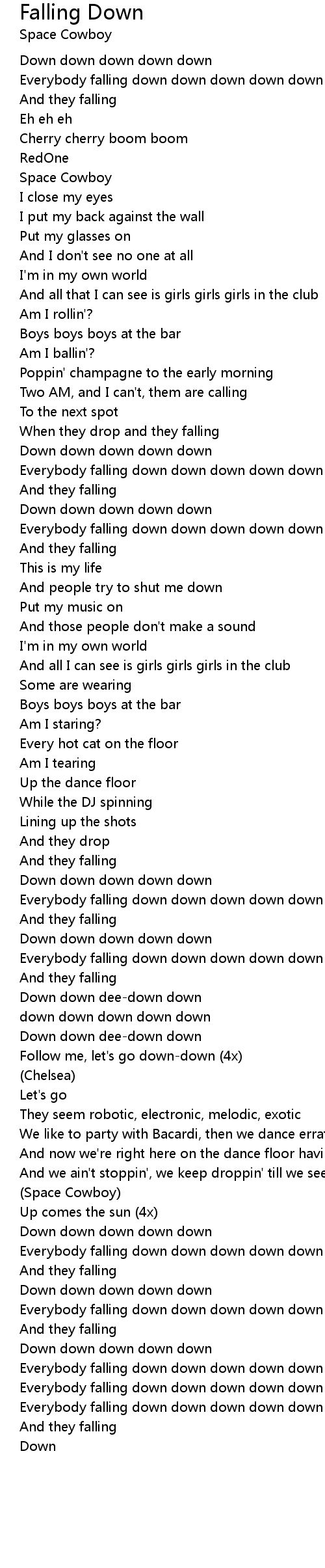 Everybody falling down down down down down |