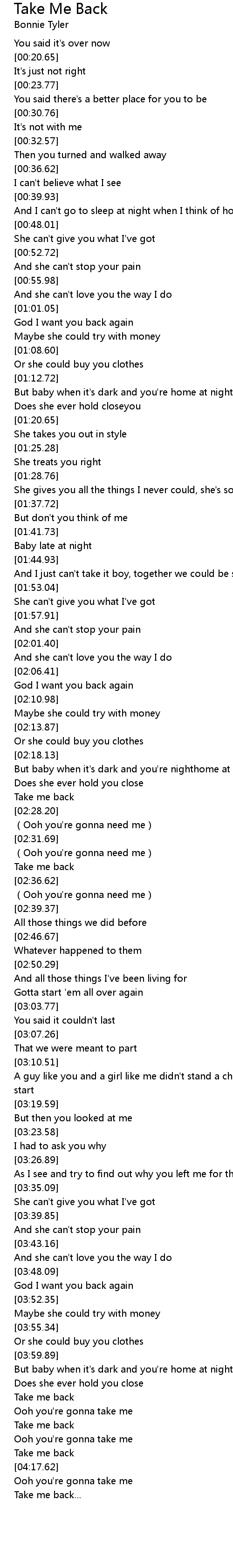 | [04:08.57] | Take me back |
