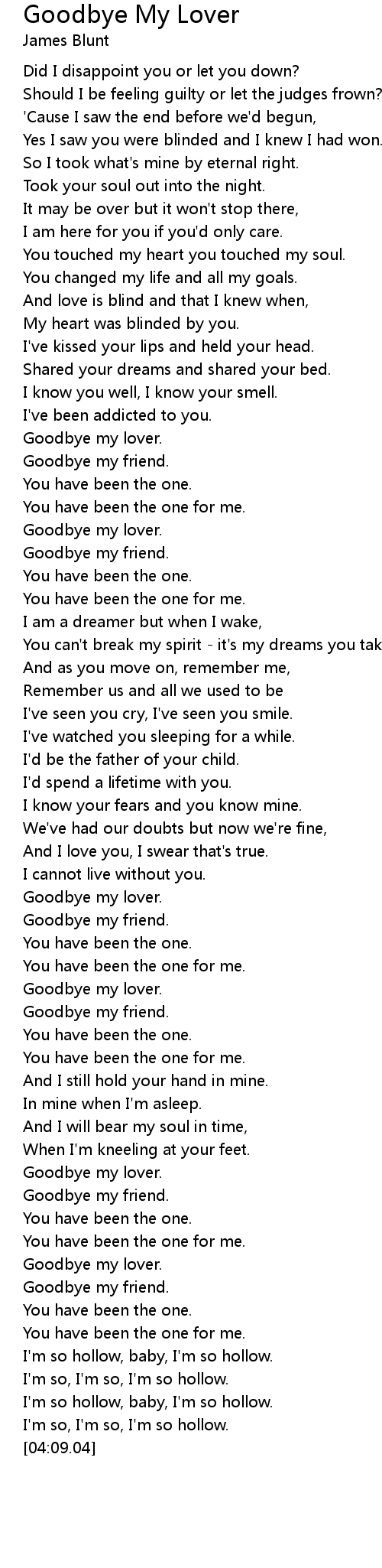 Goodbye my lover. |