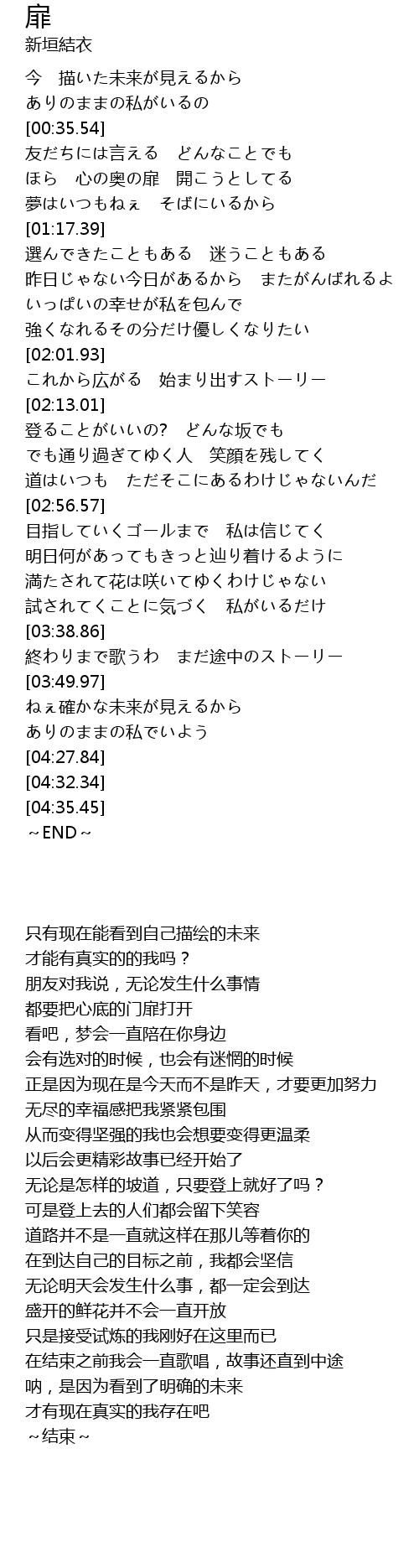| [03:40.05] | 終わりまで歌うわ まだ途中のストーリー |