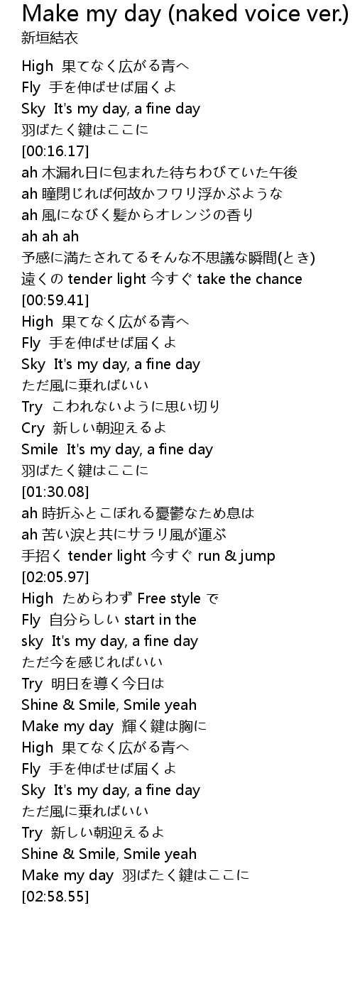 | [02:54.57] | Make my day 羽ばたく鍵はここに |