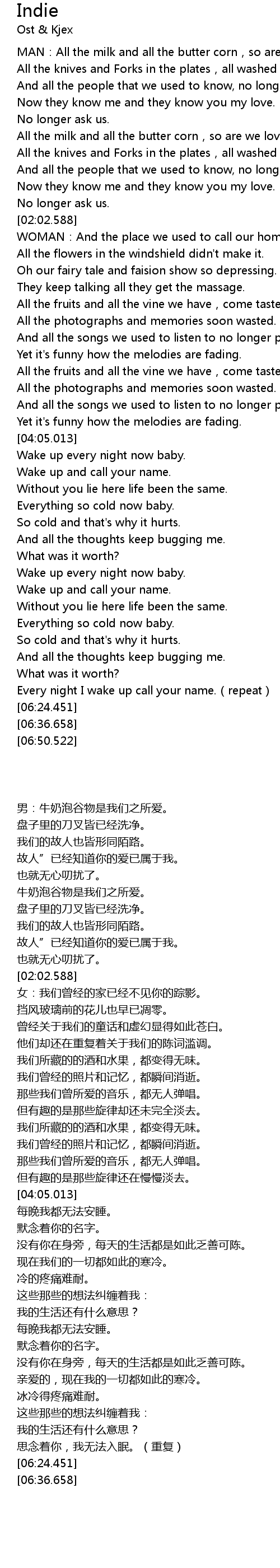 | [05:38.060] | Every night I wake up call your name.(repeat) |