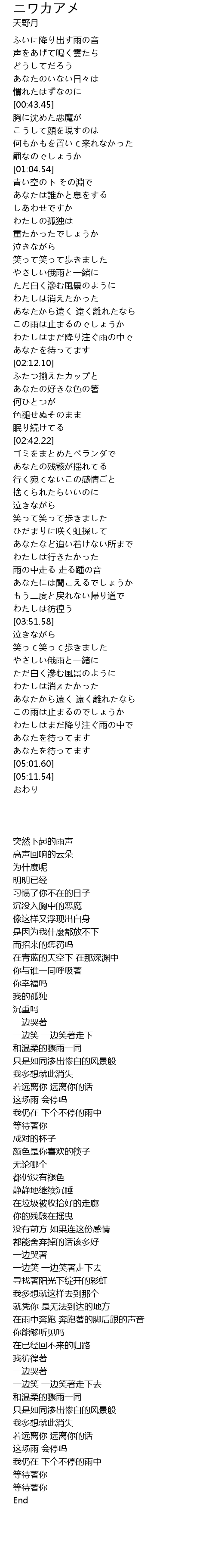 | [04:42.55] | わたしはまだ降り注ぐ雨の中で |