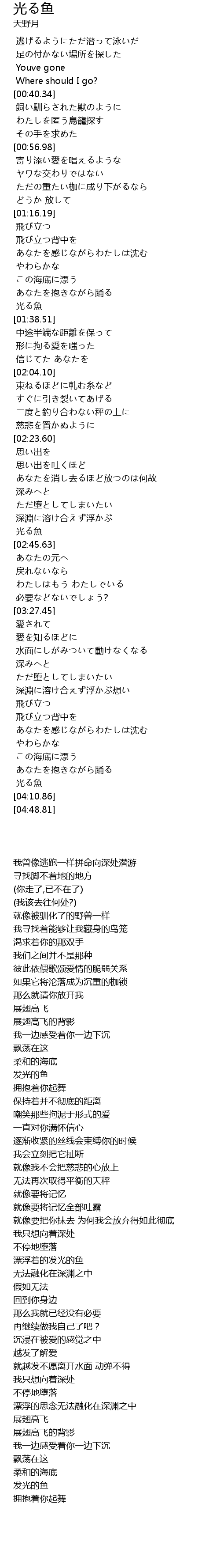 | [00:21.30] | 逃げるようにただ潜って泳いだ |