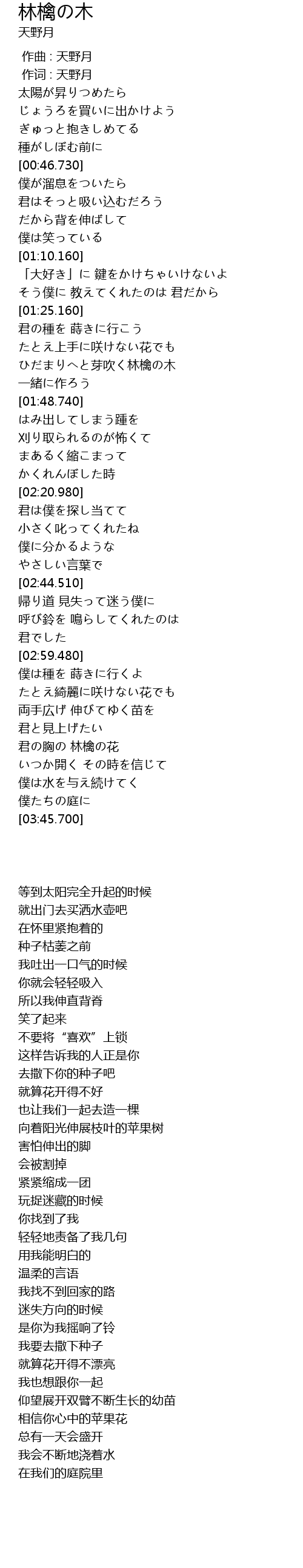 | [01:36.620] | ひだまりへと芽吹く林檎の木 |