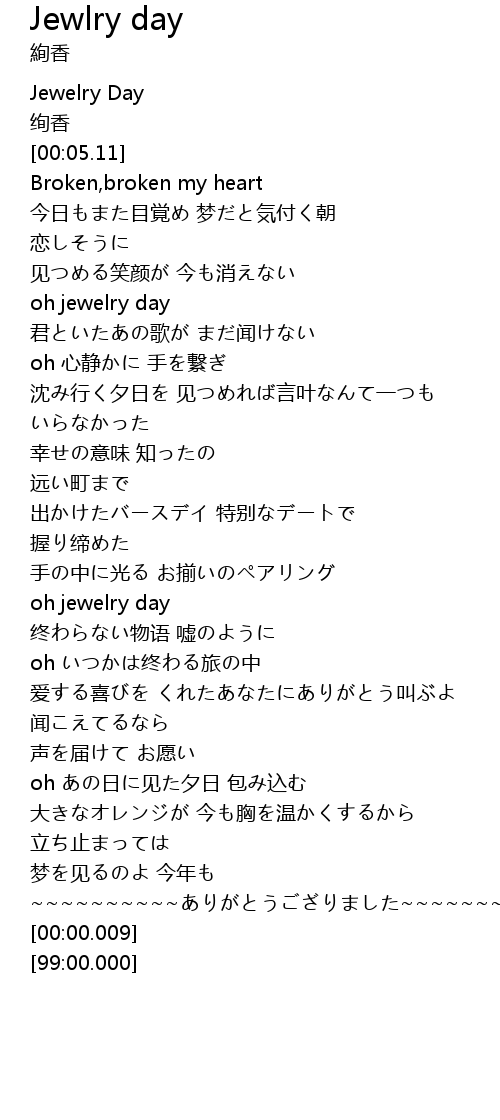 | [02:21.35] | 手の中に光る お揃いのペアリング |