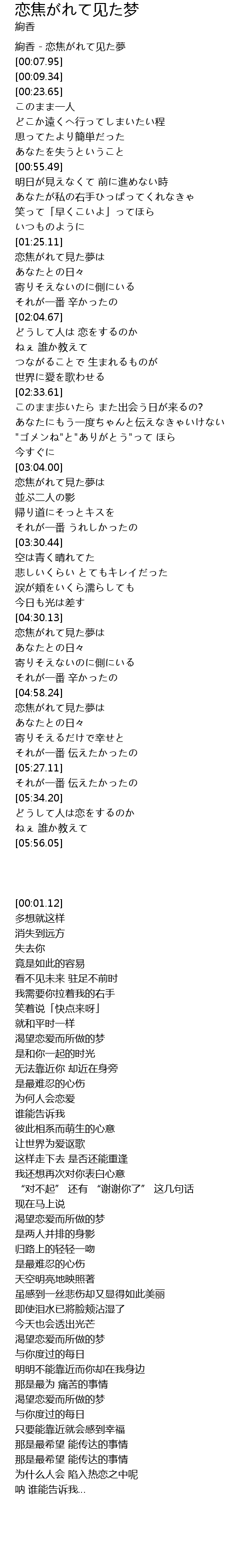 | [00:01.12] | 絢香 - 恋焦がれて见た夢 |