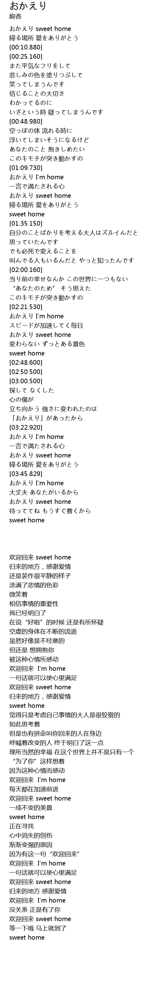 | [00:06.100] | 帰る場所 愛をありがとう |
