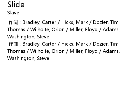 | [00:00.000] | 作词 : Bradley, Carter / Hicks, Mark / Dozier, Tim / Lockett, Thomas / Wilhoite, Orion / Miller, Floyd / Adams, Mark / Webster, Daniel / Washington, Steve |