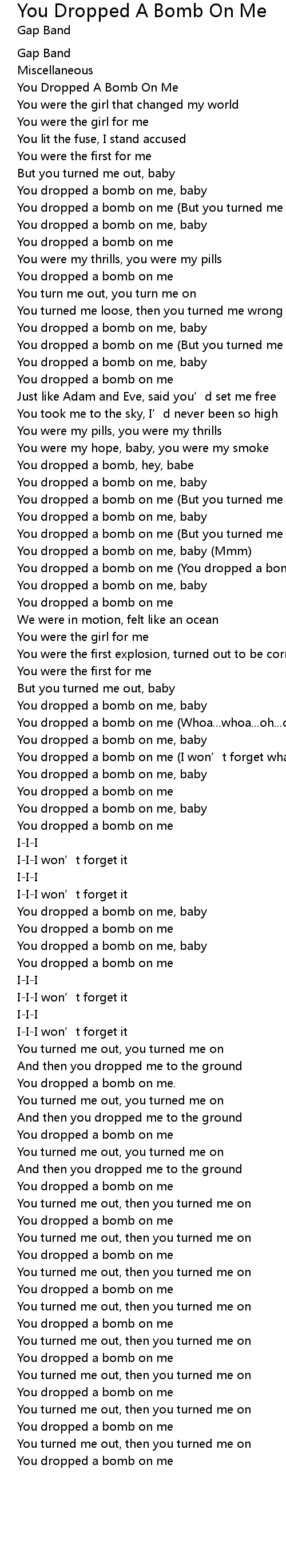 | You dropped a bomb on me You dropped a bomb on me, baby | |
