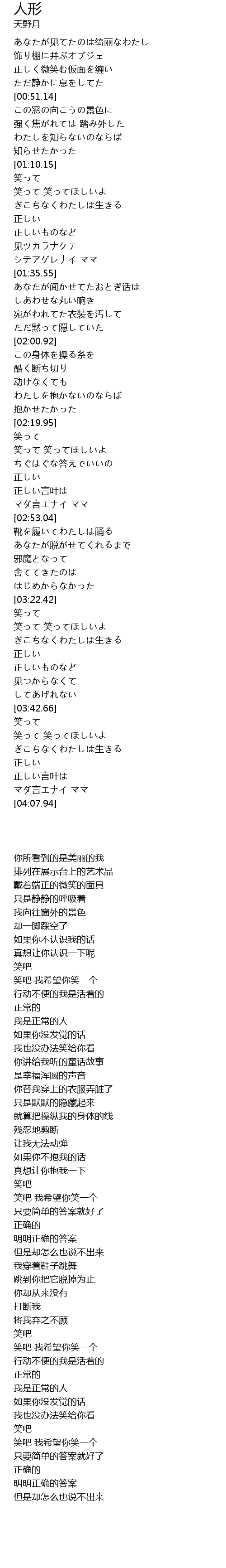 | [01:16.13] | ぎこちなくわたしは生きる |
