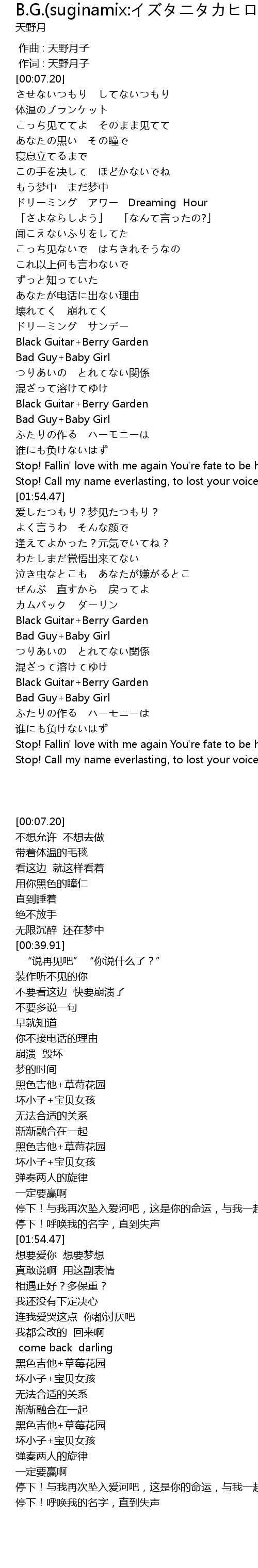 | Song | B.G.(suginamix:イズタニタカヒロ) |