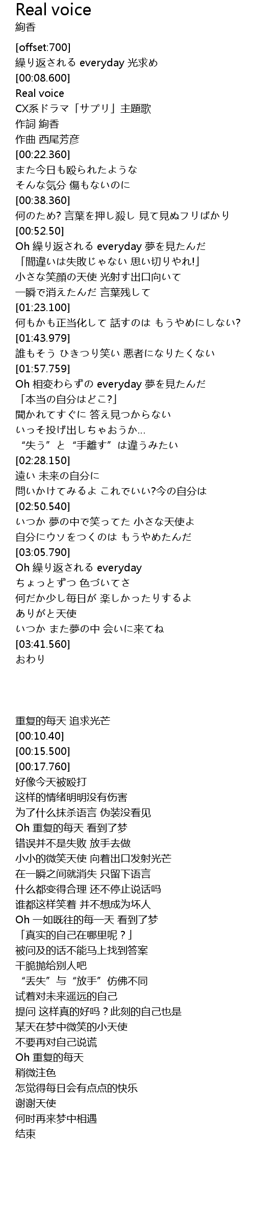 | [00:15.500] | CX系ドラマ「サプリ」主題歌 |