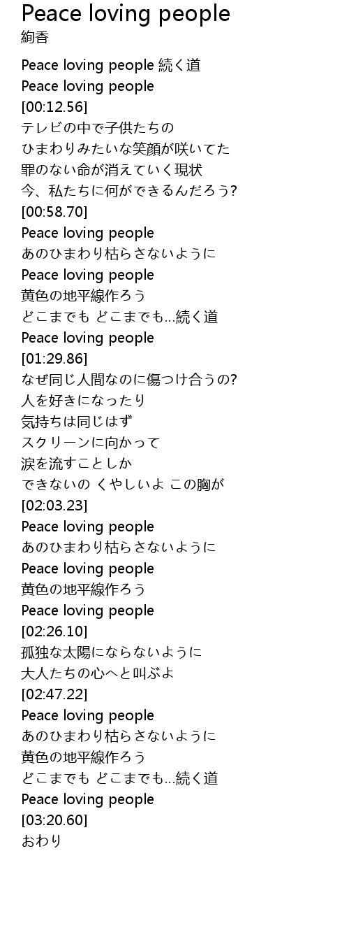 | [00:00.82] | Peace loving people 続く道 |