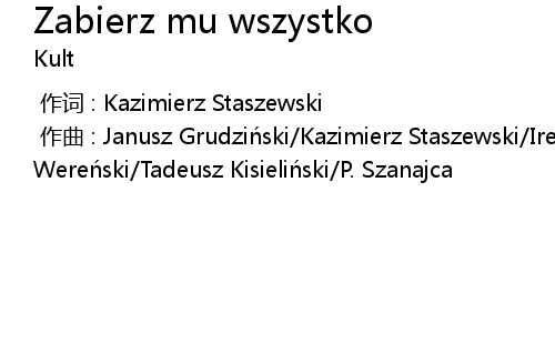 [00:00.000] 作曲 : Janusz Grudziński/Kazimierz Staszewski/Ireneusz Wereński/Tadeusz Kisieliński/P. Szanajca