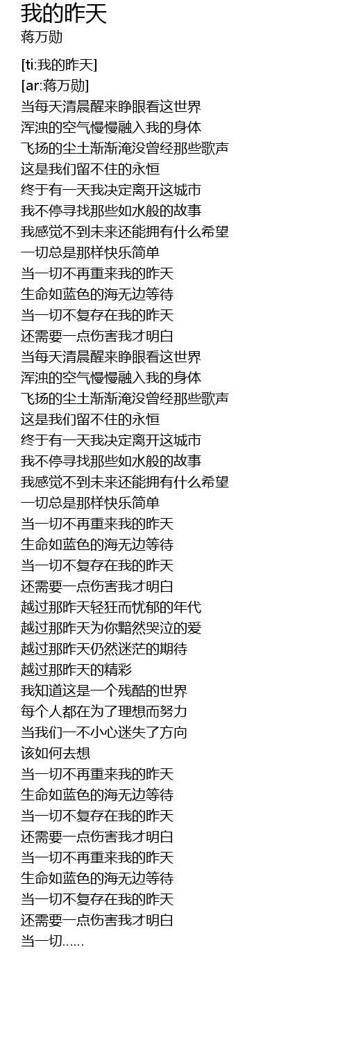 | [02:58.444] | 当一切不再重来我的昨天 |