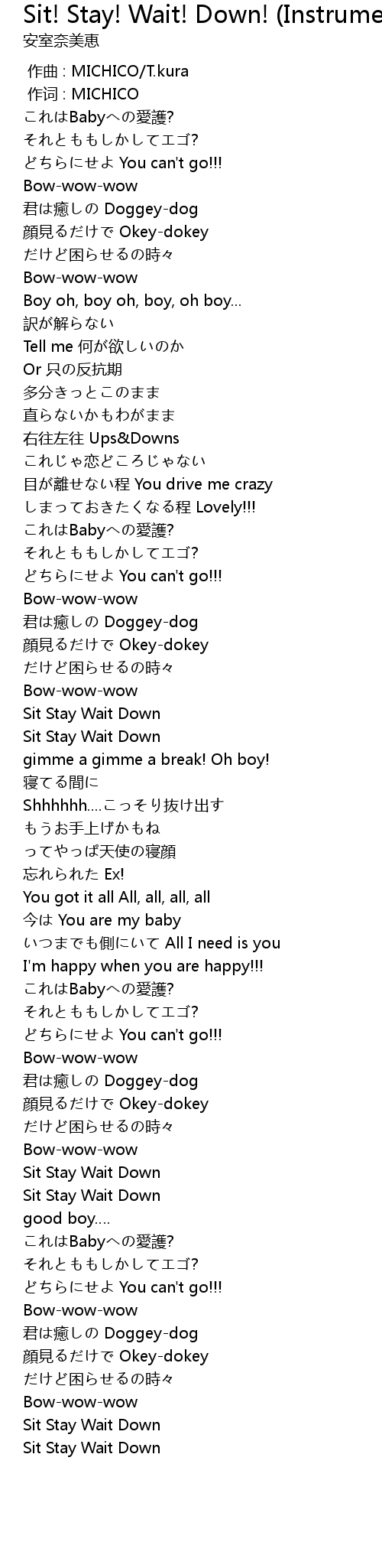 | Song | Sit! Stay! Wait! Down! (Instrumental) |