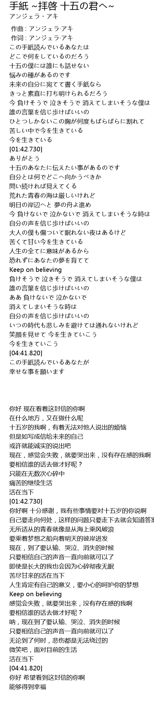 | [00:01.00] | 作词 : アンジェラ·アキ |
