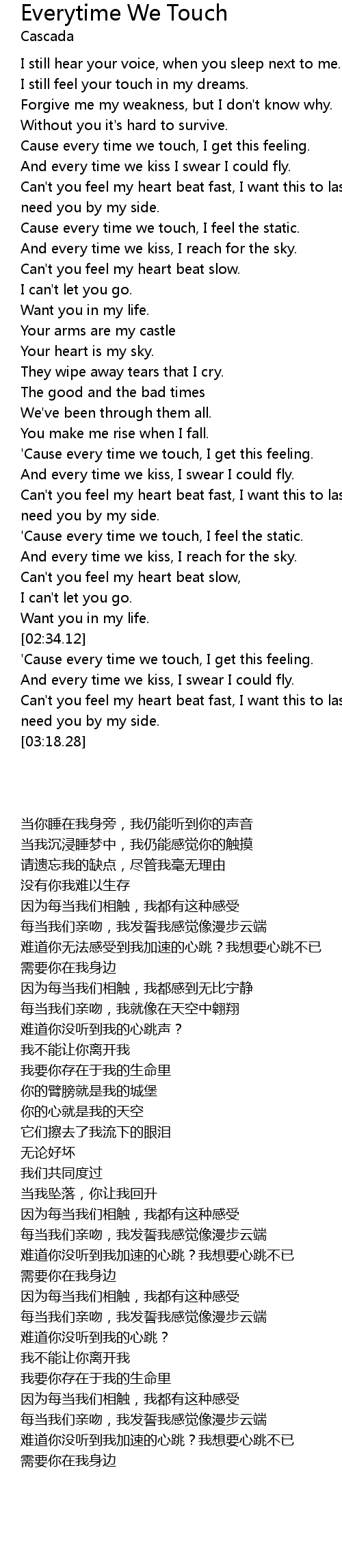 'Cause every time we touch, I get this feeling. |