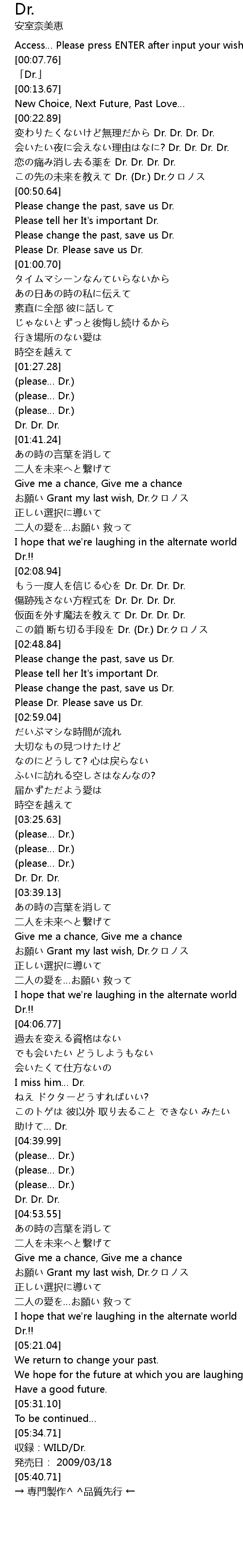 | [00:44.46] | この先の未来を教えて Dr. (Dr.) Dr.クロノス |