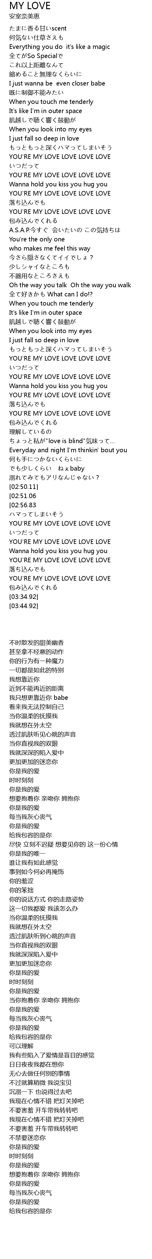 | [02:24.37] | YOU' RE MY LOVE LOVE LOVE LOVE |