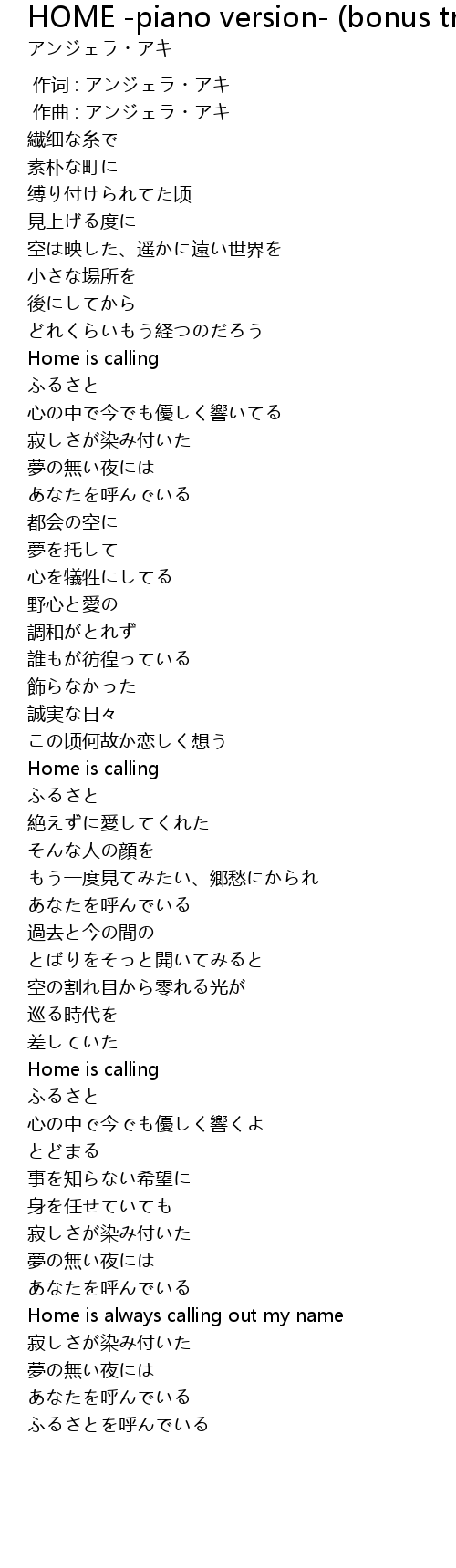 | [00:00.000] | 作词 : アンジェラ・アキ |