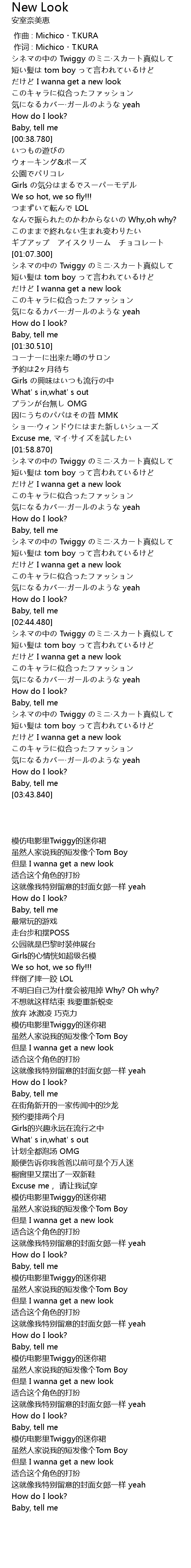 | [03:21.360] | シネマの中の Twiggy のミニ·スカート真似して |