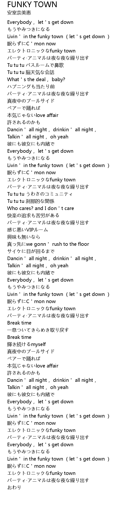 | [03:14.70] | Livin in the funky town let s get down |