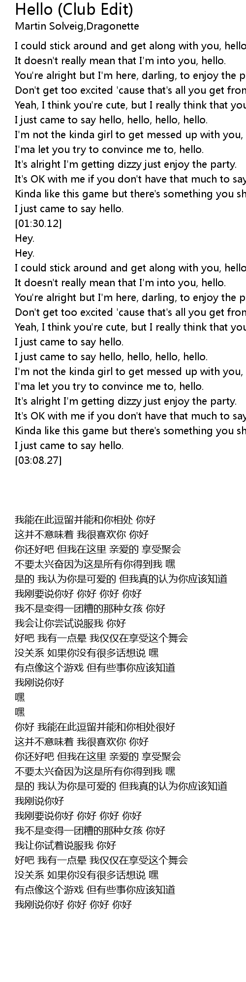 I just came to say hello, hello, hello, hello. |