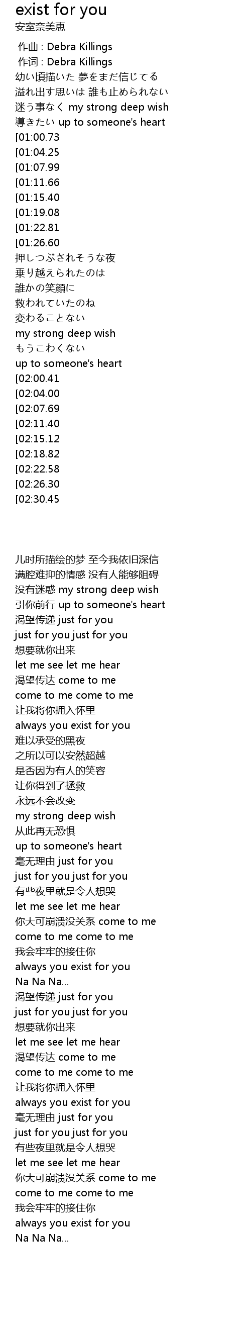 | [03:55.89][02:26.30] | always you exist for you |