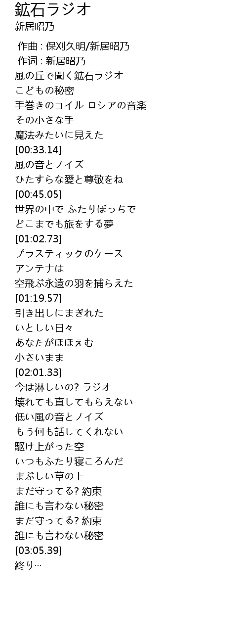 | [00:05.70] | 風の丘で聞く鉱石ラジオ |