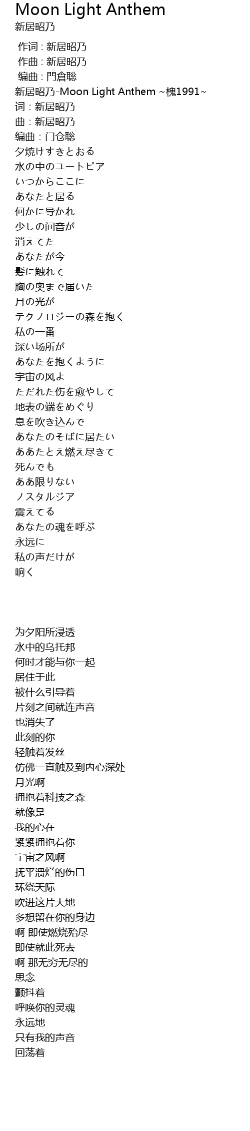 | [00:00.35] | xīn jū zhāo nǎi Moon Light Anthem huái 1991 |