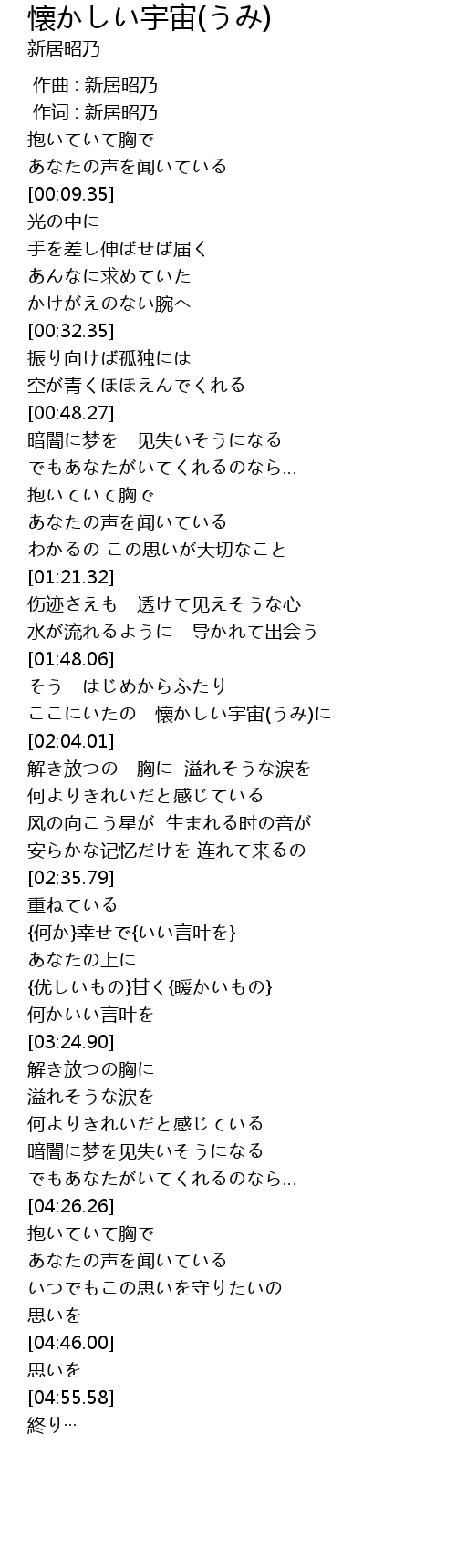 | [01:55.01] | ここにいたの 懐かしい宇宙(うみ)に |