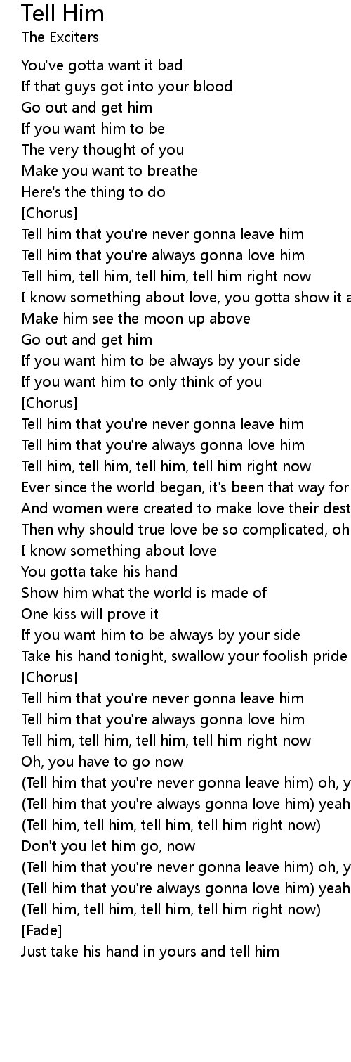Tell him, tell him, tell him, tell him right now |