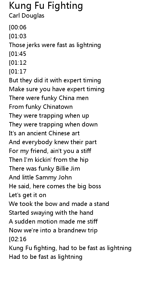 [02:37] Kung Fu fighting, had to be fast as lightning