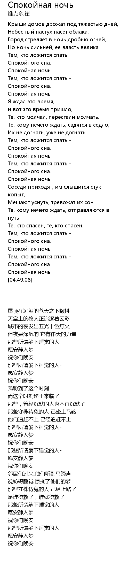 Спокойная ночь  Lyrics