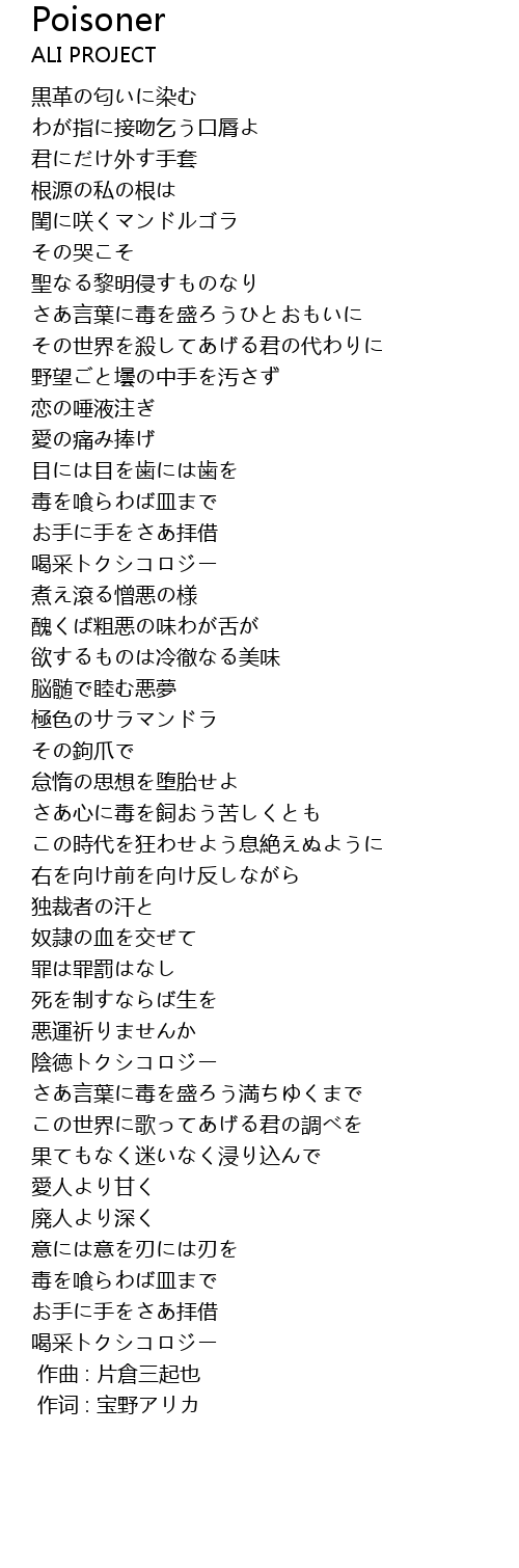 | [03:53] | さあ言葉に毒を盛ろう満ちゆくまで |