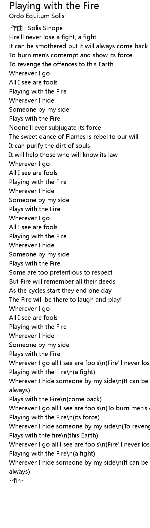 | [03:19.81] | Playing with the Fire\n(its force) |