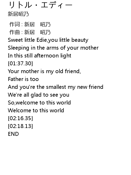 | [01:15.48] | Sweet little Edie,you little beauty |