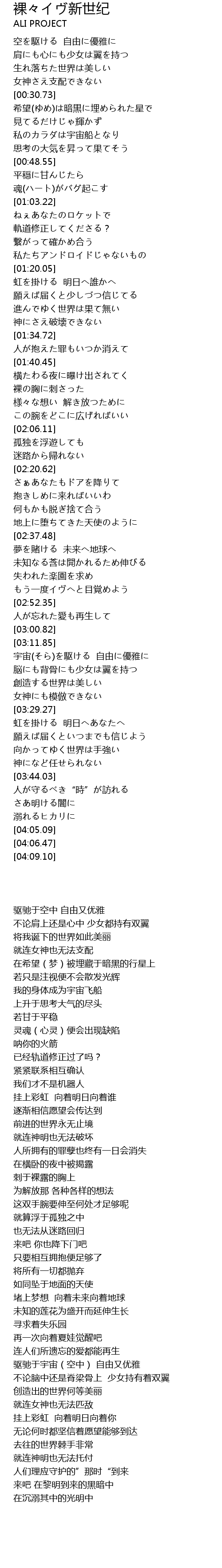 | [00:23.22] | 生れ落ちた世界は美しい |