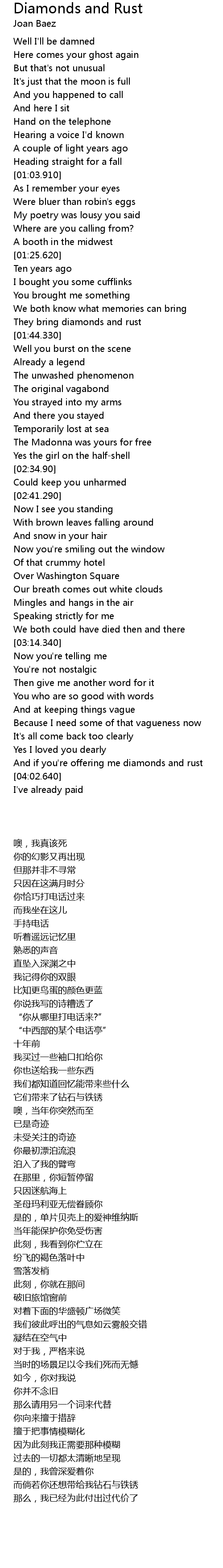 And if you're offering me diamonds and rust |