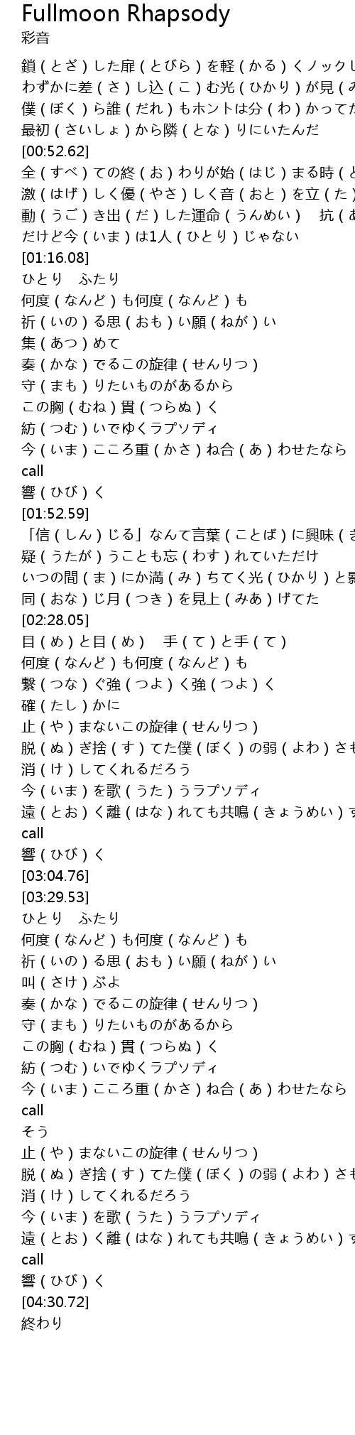 | [03:56.98] | 紡(つむ)いでゆくラプソディ |