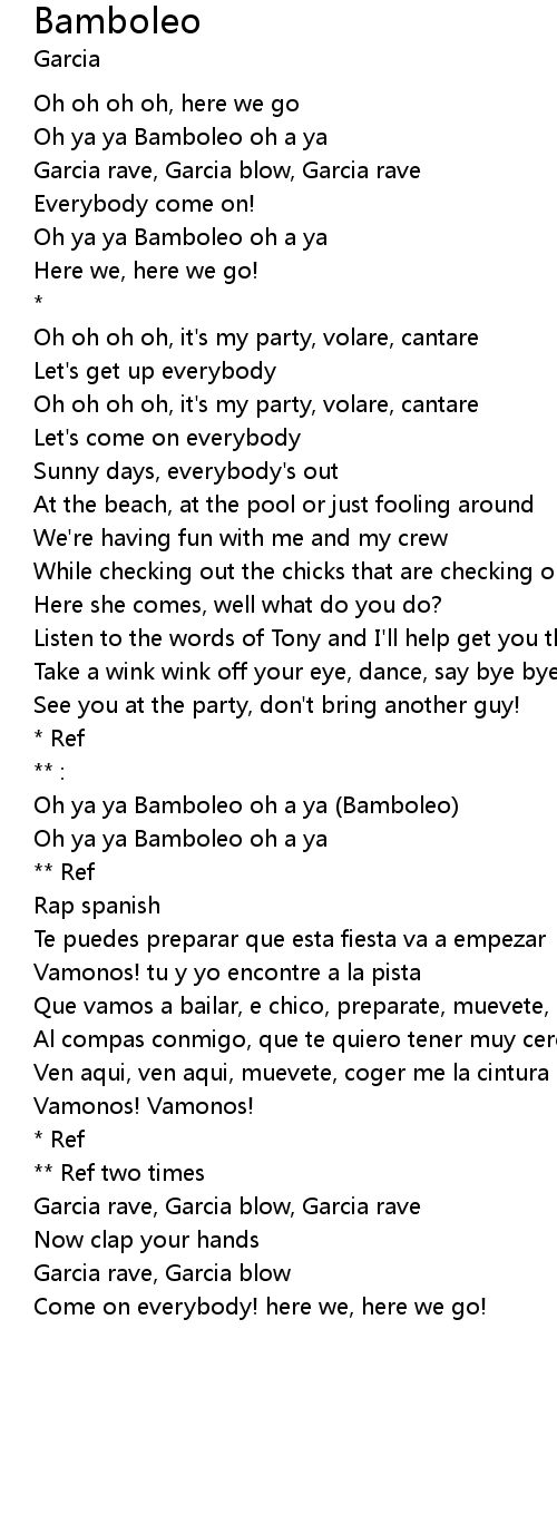 Oh ya ya Bamboleo oh a ya (Bamboleo) |