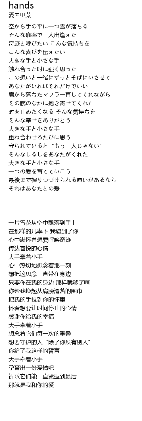 | [01:40.760] | dà shǒu xiǎo shǒu |