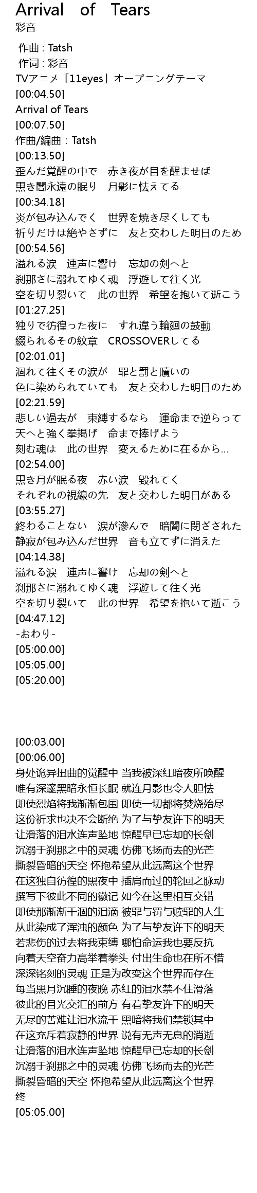 | [00:06.00] | Arrival of Tears |