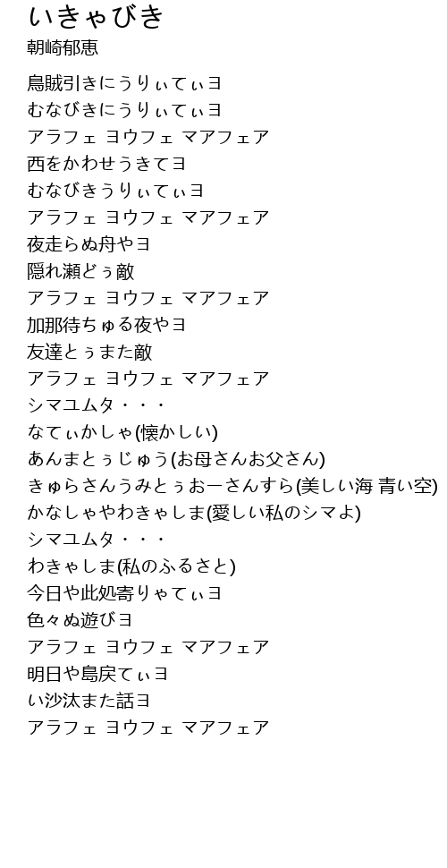 | [04:01.837] | かなしゃやわきゃしま(愛しい私のシマよ) |