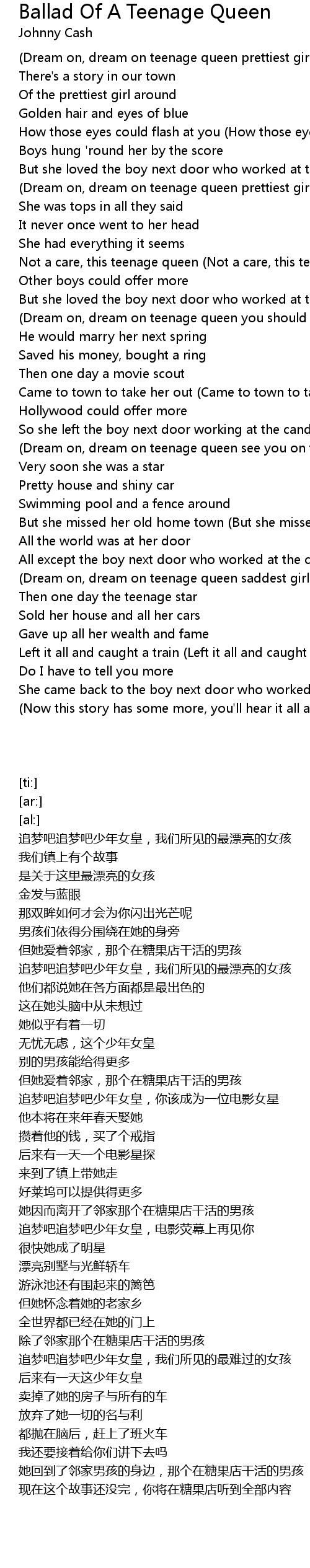 [00:49.14] (Dream on, dream on teenage queen you should be a movie queen)