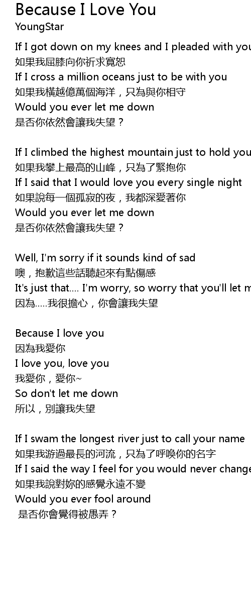 | yīn wèi..... wǒ hěn dān xīn, nǐ huì ràng wǒ shī wàng | |